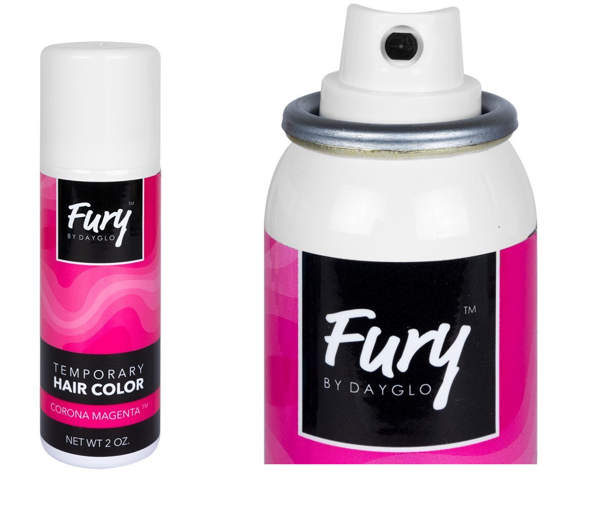 “DayGlo newest fluorescent addition line up is here - Fury. Fury is temporary hair spray suitable for any occasion. It is available in 9 different colors. Let us know what you think! Be Bright. Be Bold. Be You.”